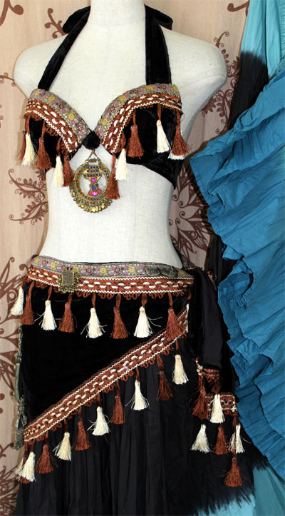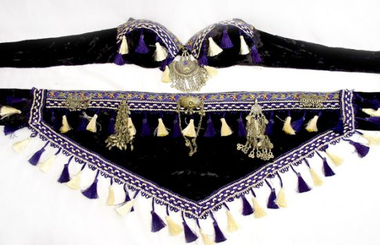 Available in following attractive Colors: Black,ivory and white.. The bra and belt set is decorated with tone of things ie chains, brooches, appliques, beadwork accessories ,medallions and and etc..