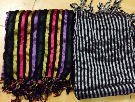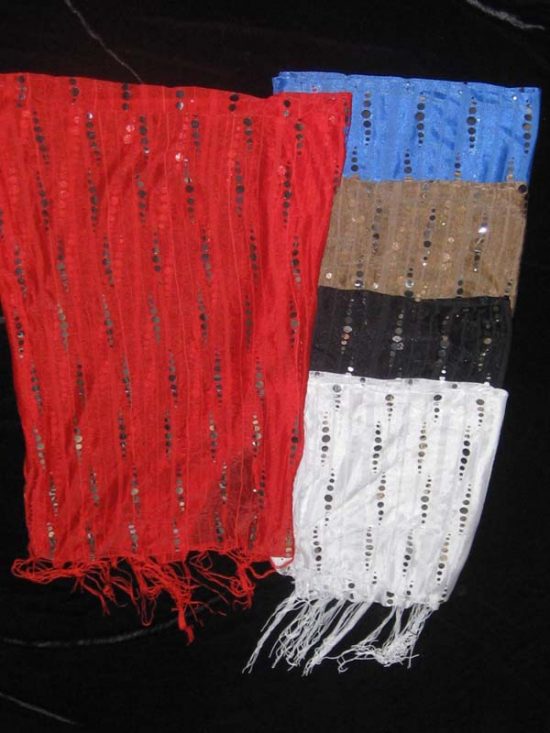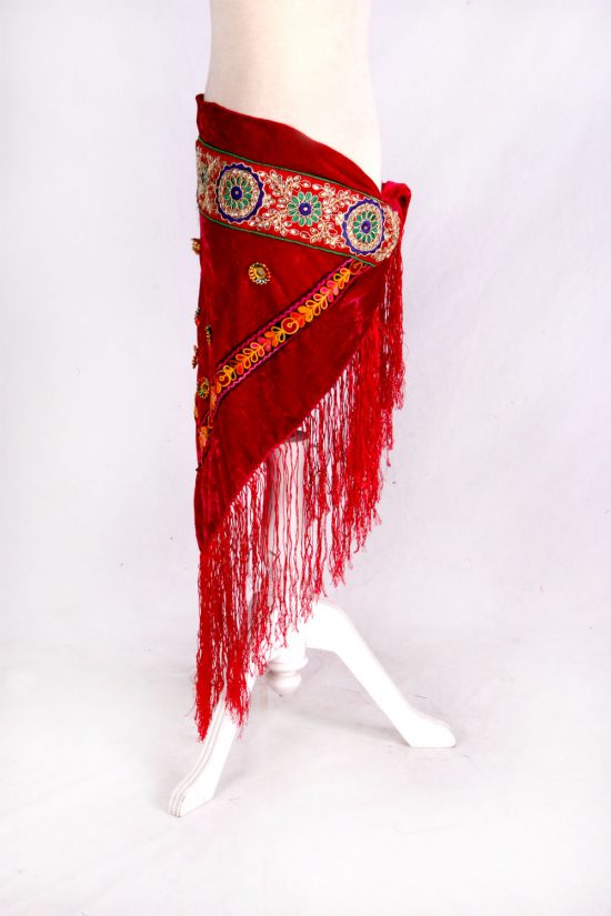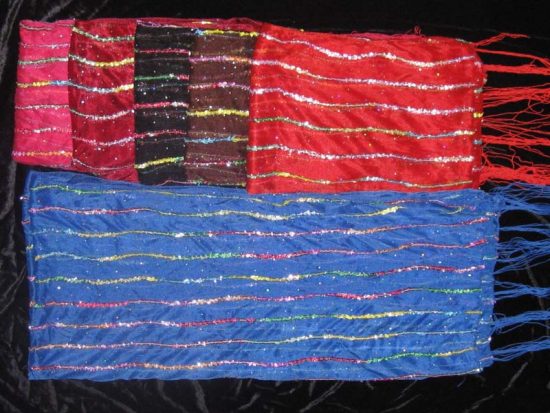 PLAIN VELVET SCARFS WITH CROCHET FRINGE & DECORATED WITH TRIMS,MIRRORS AND ETC