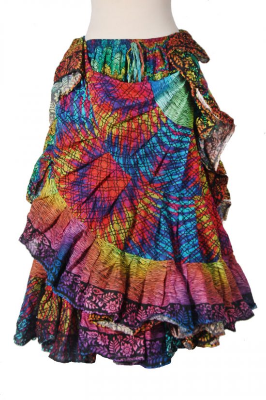 Tribal Bellydance Polka Dots TYE DYE Jaipur 25Yards FOUR Tier Skirt Bright pink