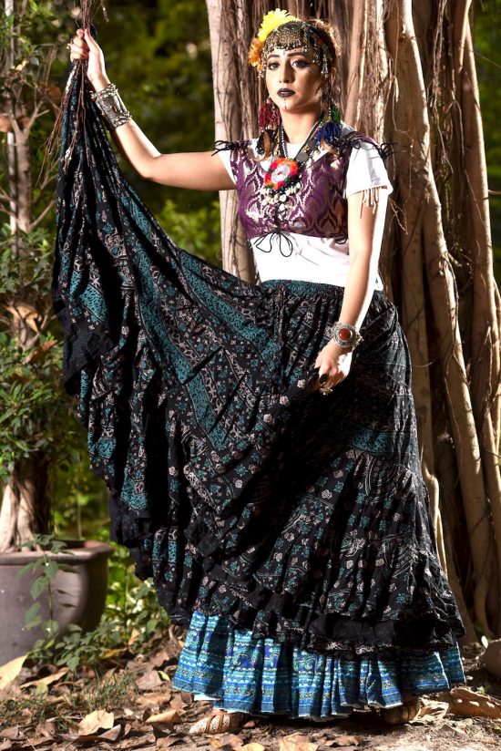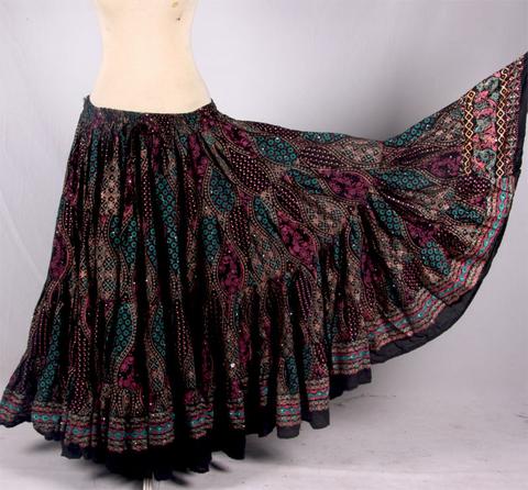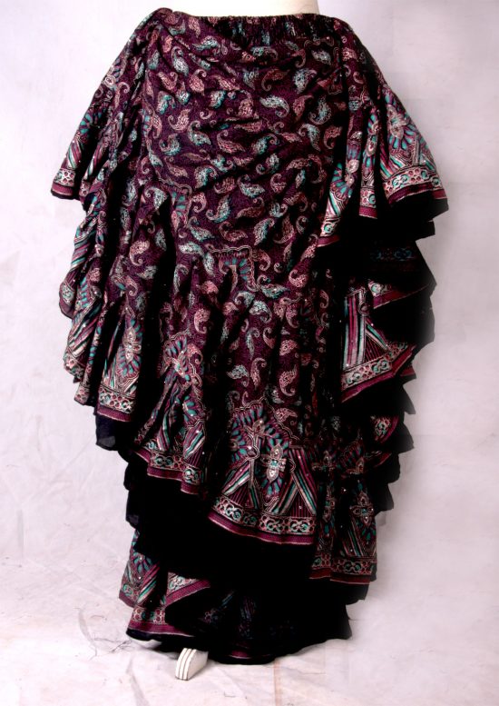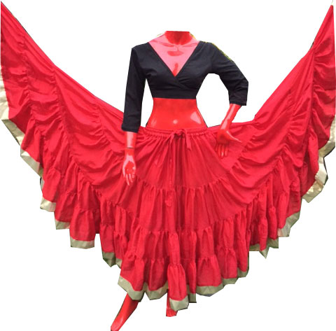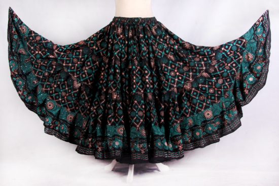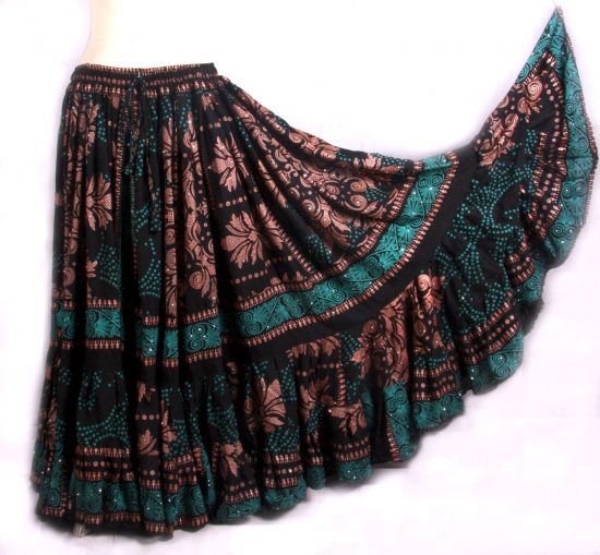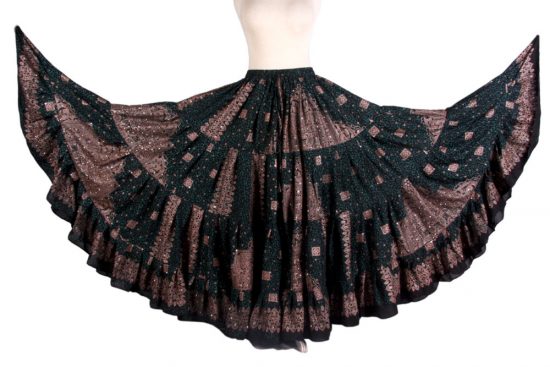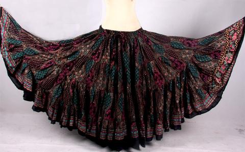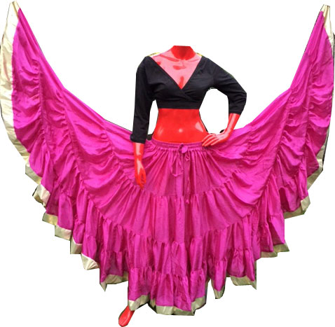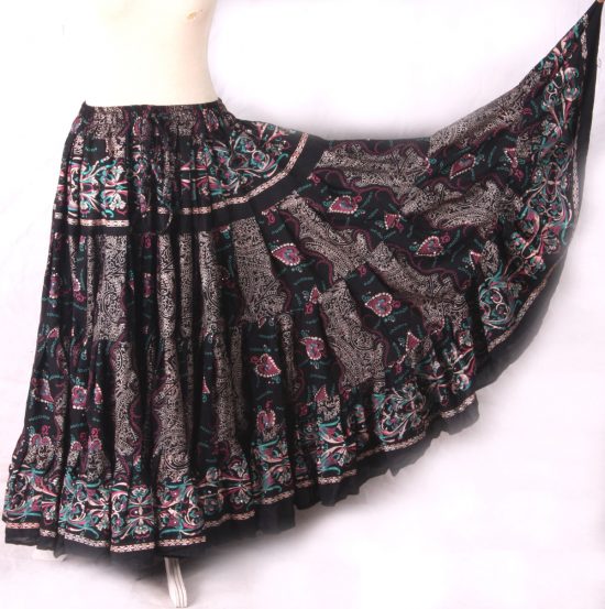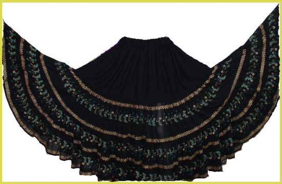 4TIER 25Y TRIBAL BELLYDANCE SKIRT WITH GOLD/SILVER TRIM AT THE BOTTOM SILK AND RAYON FABRIC