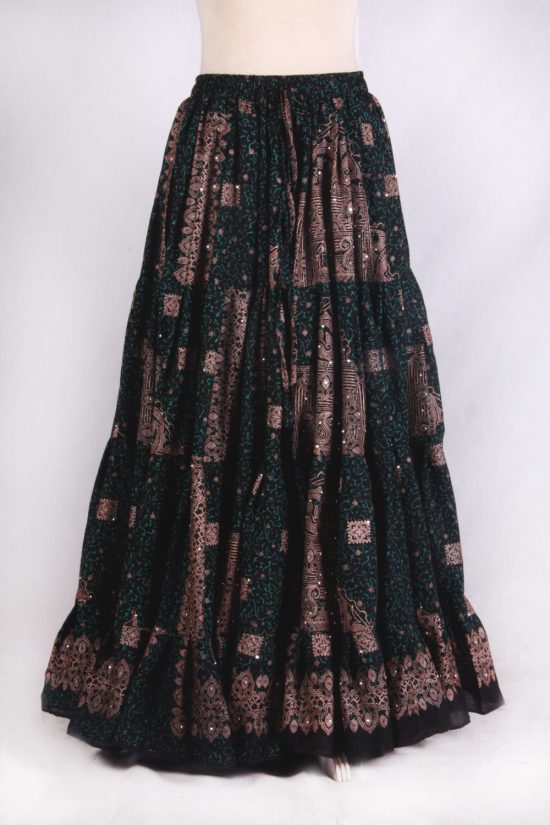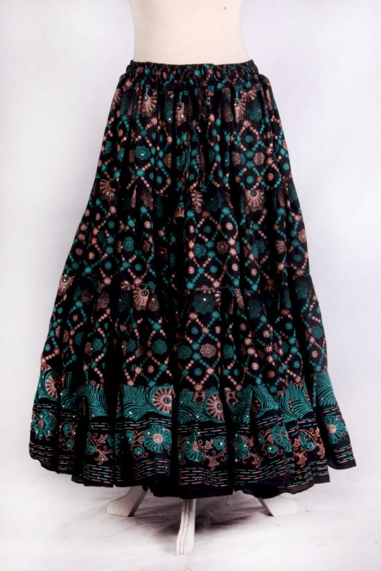 2017 BP SKIRT 100% COTTON ( STONE, AND GLITTER WORK,BLACK COLOR) 25yards Green printing