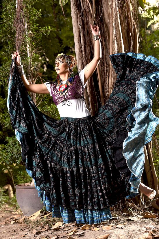 2017 COLLECTION BLOCK PRINT SKIRT 100% COTTON 25YARDS(ONLY BLACK COLOR)