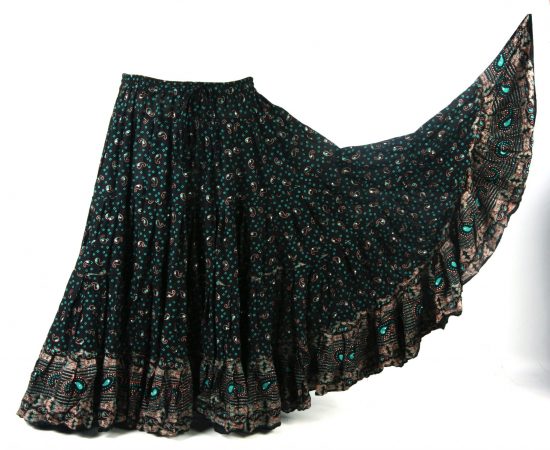 BLOCK PRINT SKIRT WITH STONE WORK (100% COTTON) Black COLOR WITH GREEN PRINTING 2018