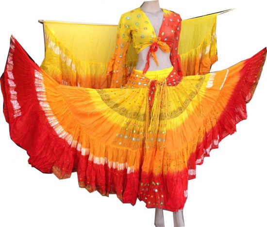 Bolly wood Three Tone Skirt (25yards circumference) Yellow/Orange/Red