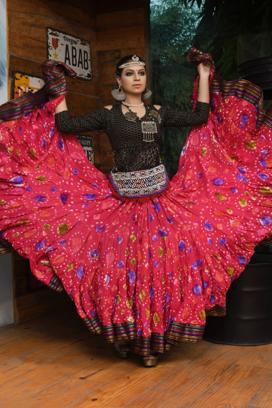 Tribal Belly dance 25YARDS Jaipur Pink Padma Skirt (100% Cotton)
