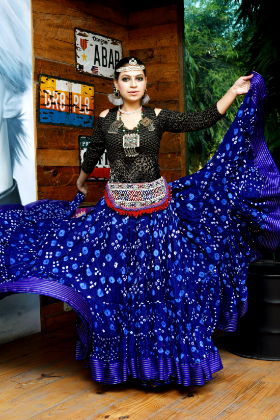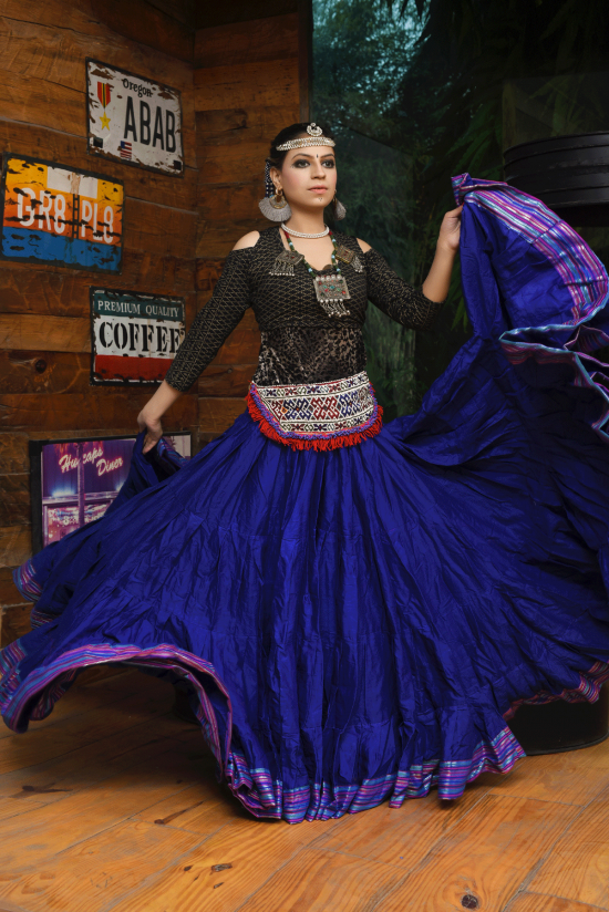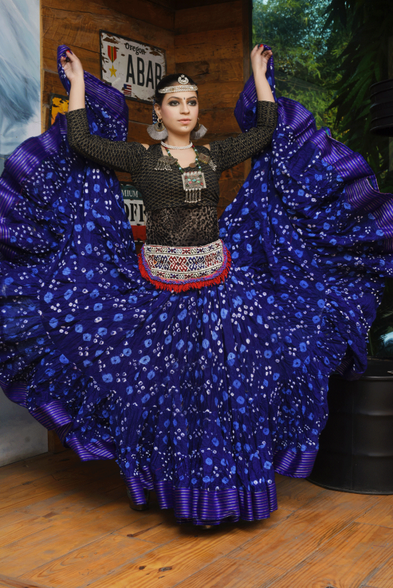 Tribal Belly dance 25YARDS Jaipur Blue Padma Skirt (100% Cotton)