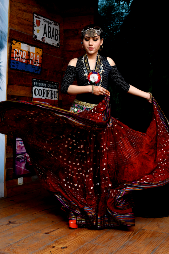 Tribal Belly dance 25YARDS Bollywood Padma Skirt (100% Cotton) Burgundy Tye Dye