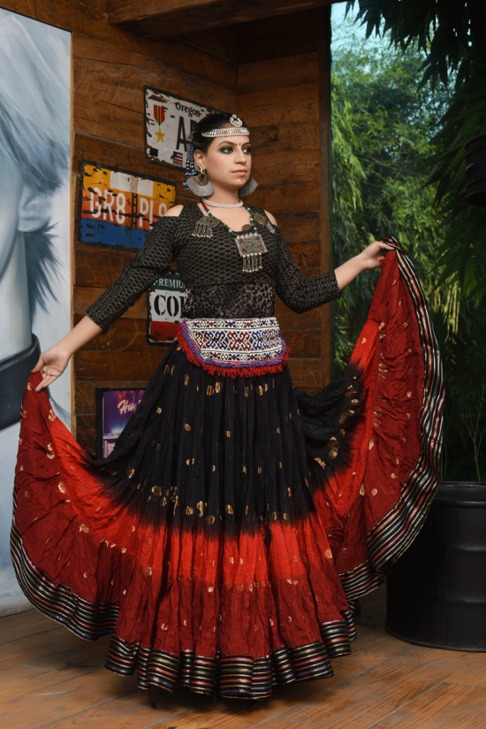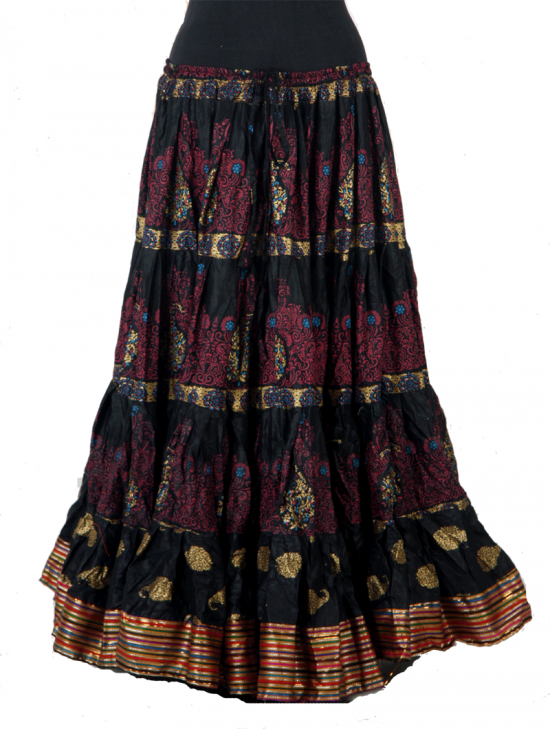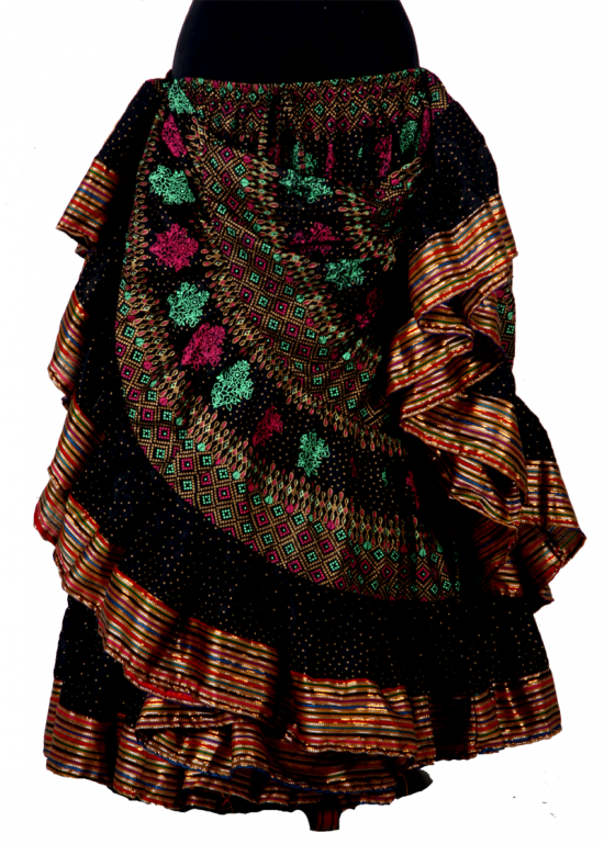 Tribal Belly dance 25YARDS Block Print Black Multi Festive Border Skirt (100% Cotton)