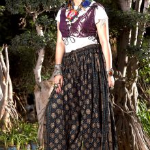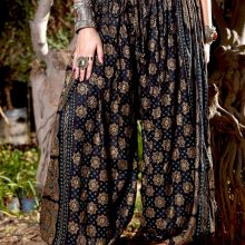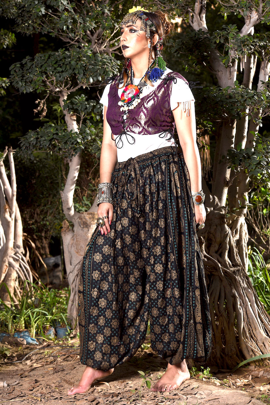 2018 COLLECTION BLOCK PRINT HAREM PANT IN BLOOMER STYLE Black