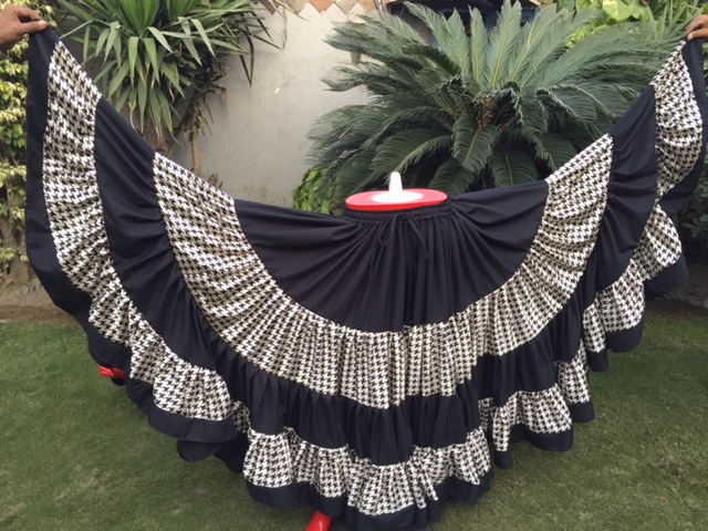 OUR NEW ARRIVAL 32 YARDS SKIRTS MADE FROM SILK PRINTED FABRIC AND BLACK SOLID COLOR..