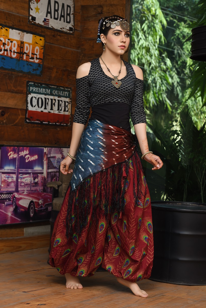 OUR BLOOMER HAREM PANTS MADE FROM 4.5 YARDS OF FABRIC AND GIVES A RELAX BAGGY FEELING.. PEACOCK PRINT