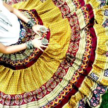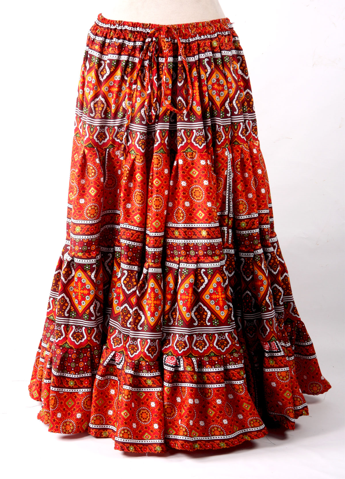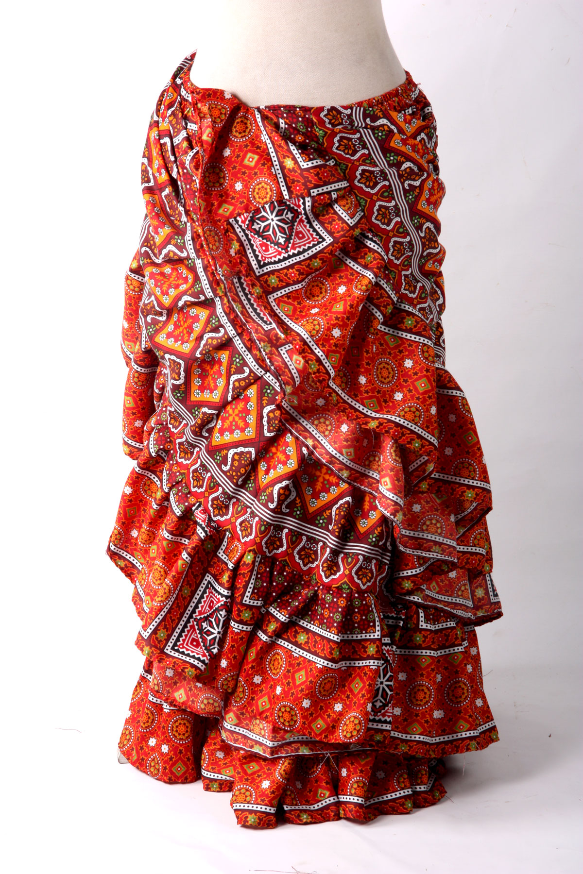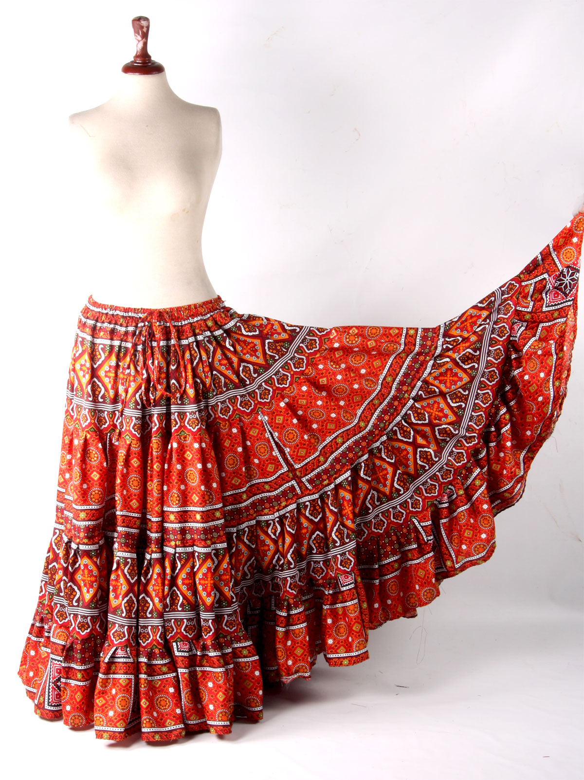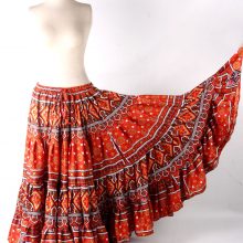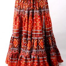 BLOCK PRINT HYDERABDI SKIRT (100% COTTON) Orange GOLD COLOR
