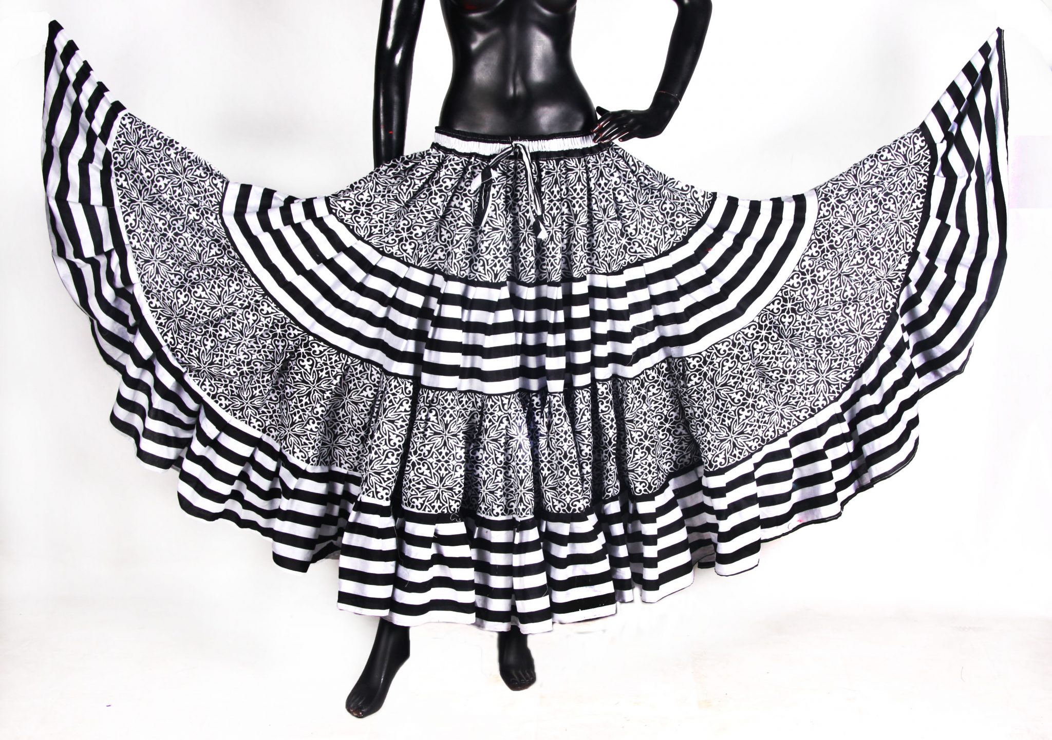 Block Print Skirt Black White Stripe Printed 2018 Collection