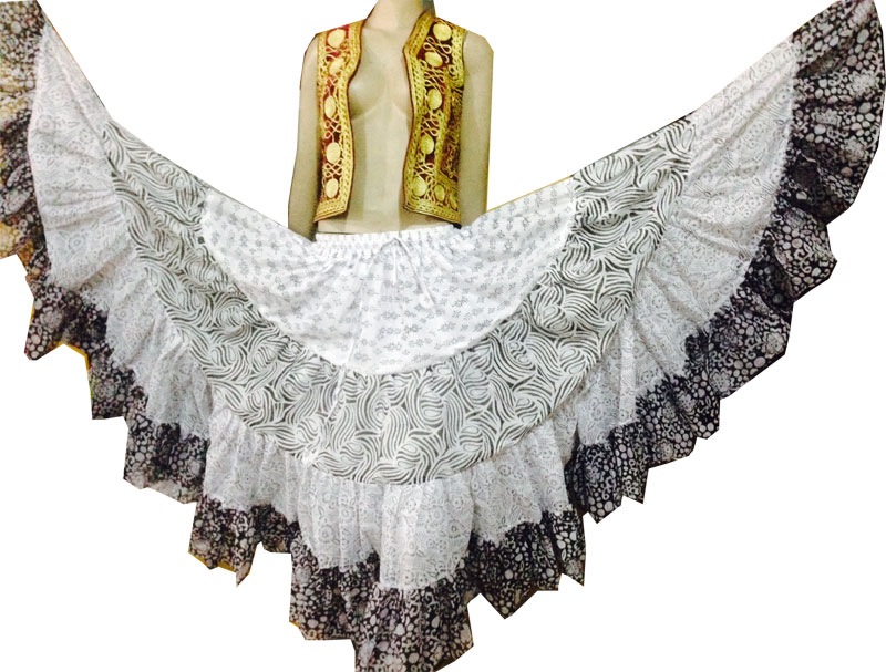 (100% COTTON) our four tier skirt are very much full i.e the circle length is 24-25yards. (25us$ per Piece)