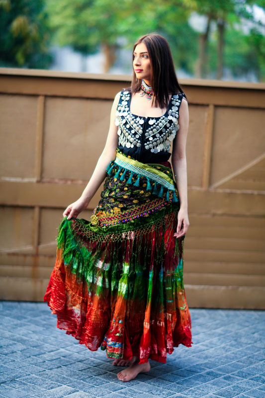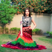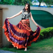 Bollywood Skirt In 3 COLOR COMBO MULTI STYLE Four Tier Skirt 35YARDS