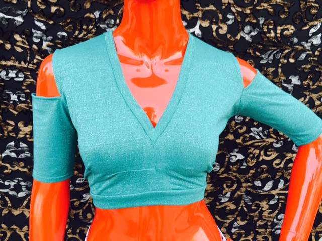 Drop Shoulder Moon Light Shiny Fabric Stretch Tops With Medallions (only for 7us$ per piece)