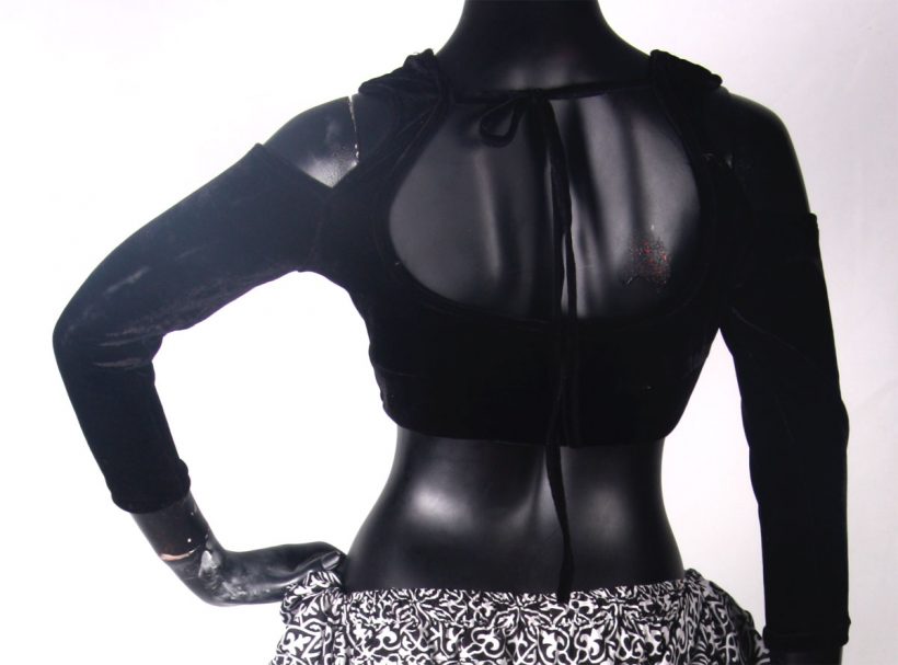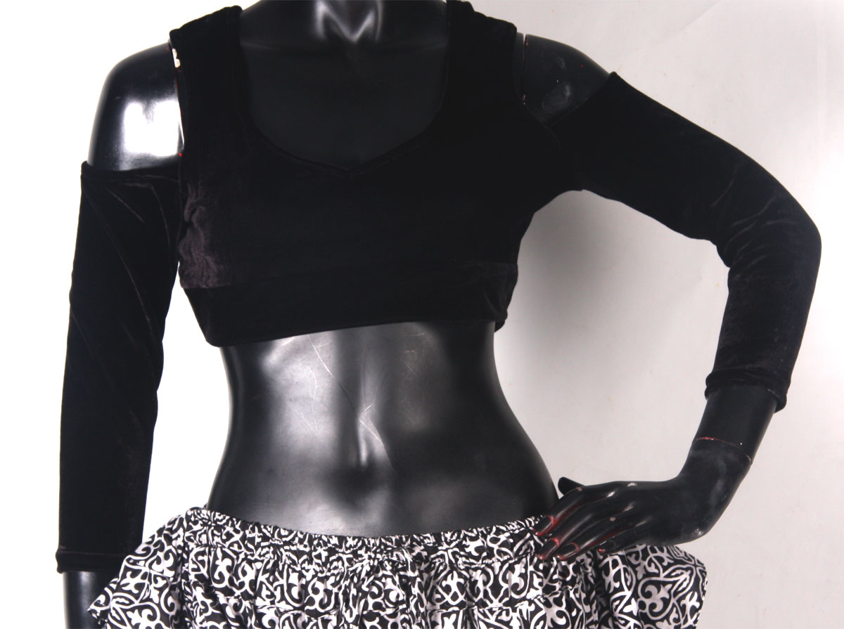 Stretch velvet choli black and burgundy Color