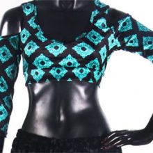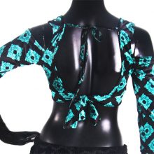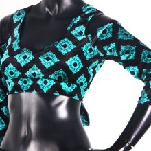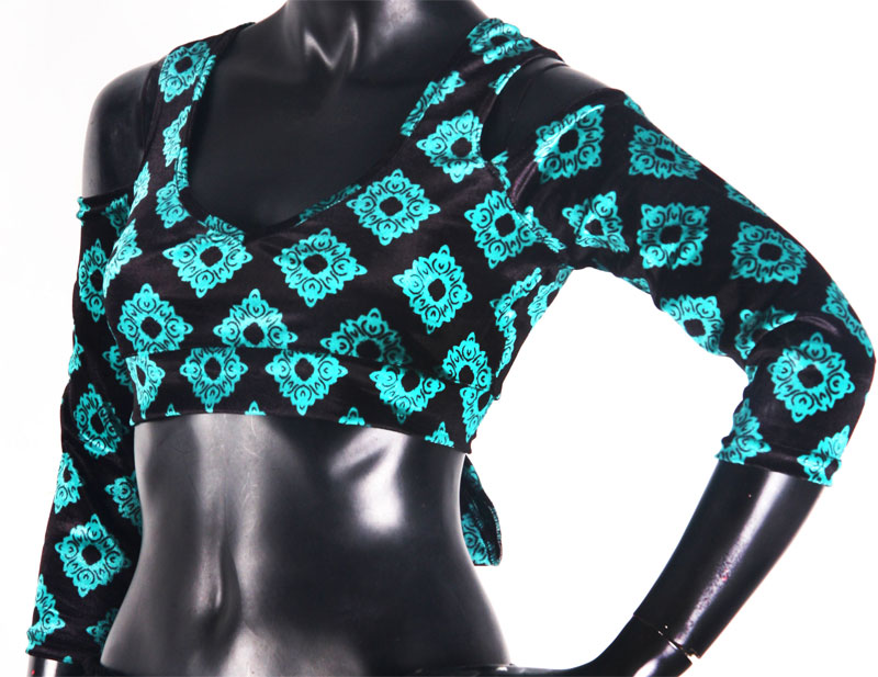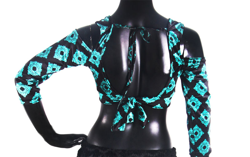 DROP SHOULDER STRETCH VELVET CHOLI Black/Green Oriental 3/4 Sleeves 2018 Collection