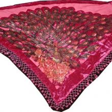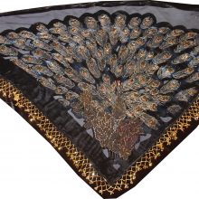 PEACOCK BURNOUT VELVET SCARFS WITH BEAD WORK ON IT AND BEADED FRINGE
