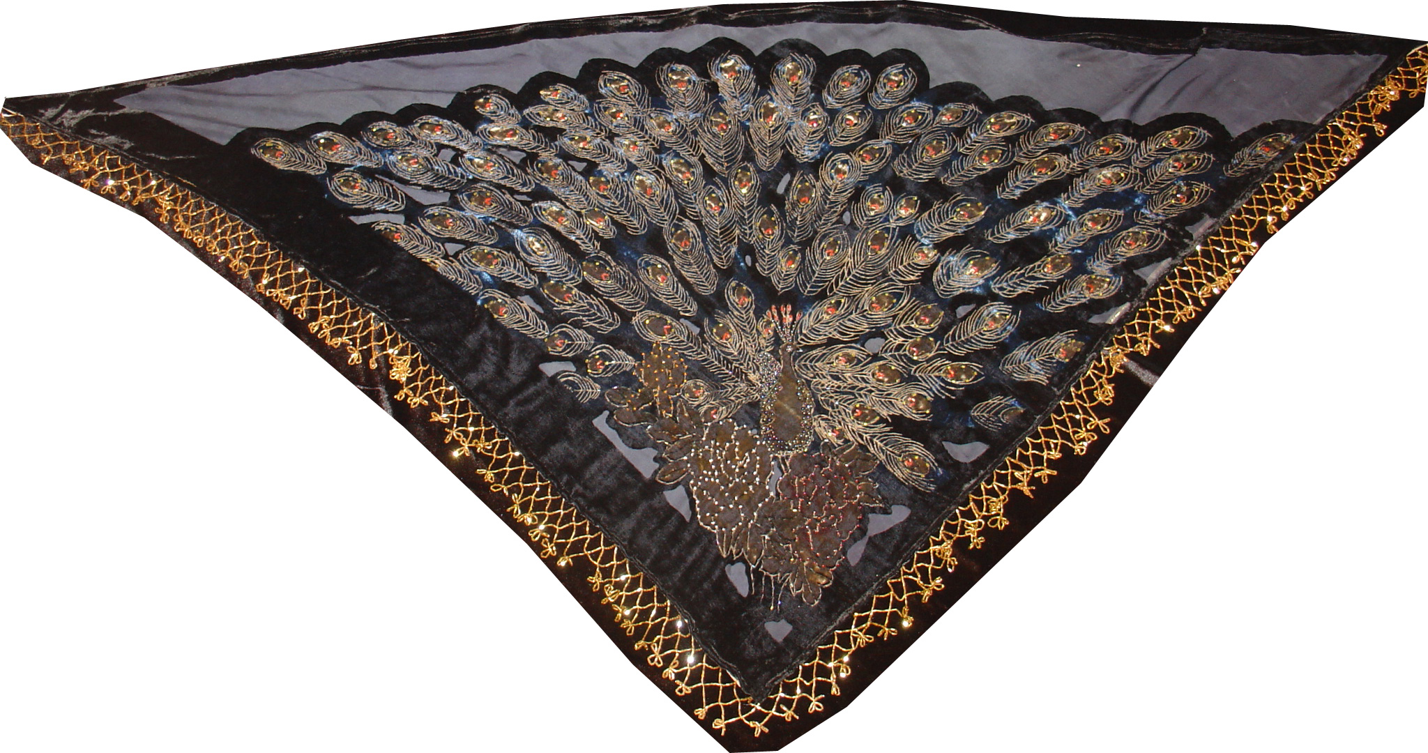 JUST ARRIVED PEACOCK SCARFS WITH BEADED FRINGE AND BEADWORK ON IT)