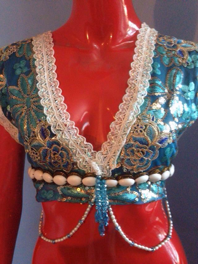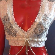 LACE HALTER TOP WITH PEARL BEADS, APPLIQUE WORK AND TRIMS ON IT