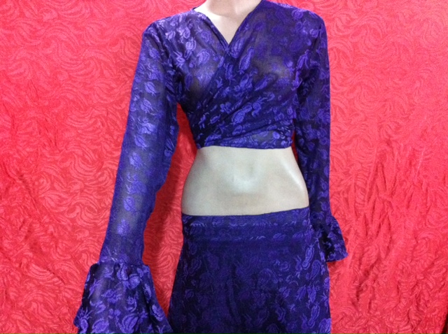 LACE TIE ON TOPS WITH 3/4UMBRELLA SLEEVES(LYCRA FABRIC