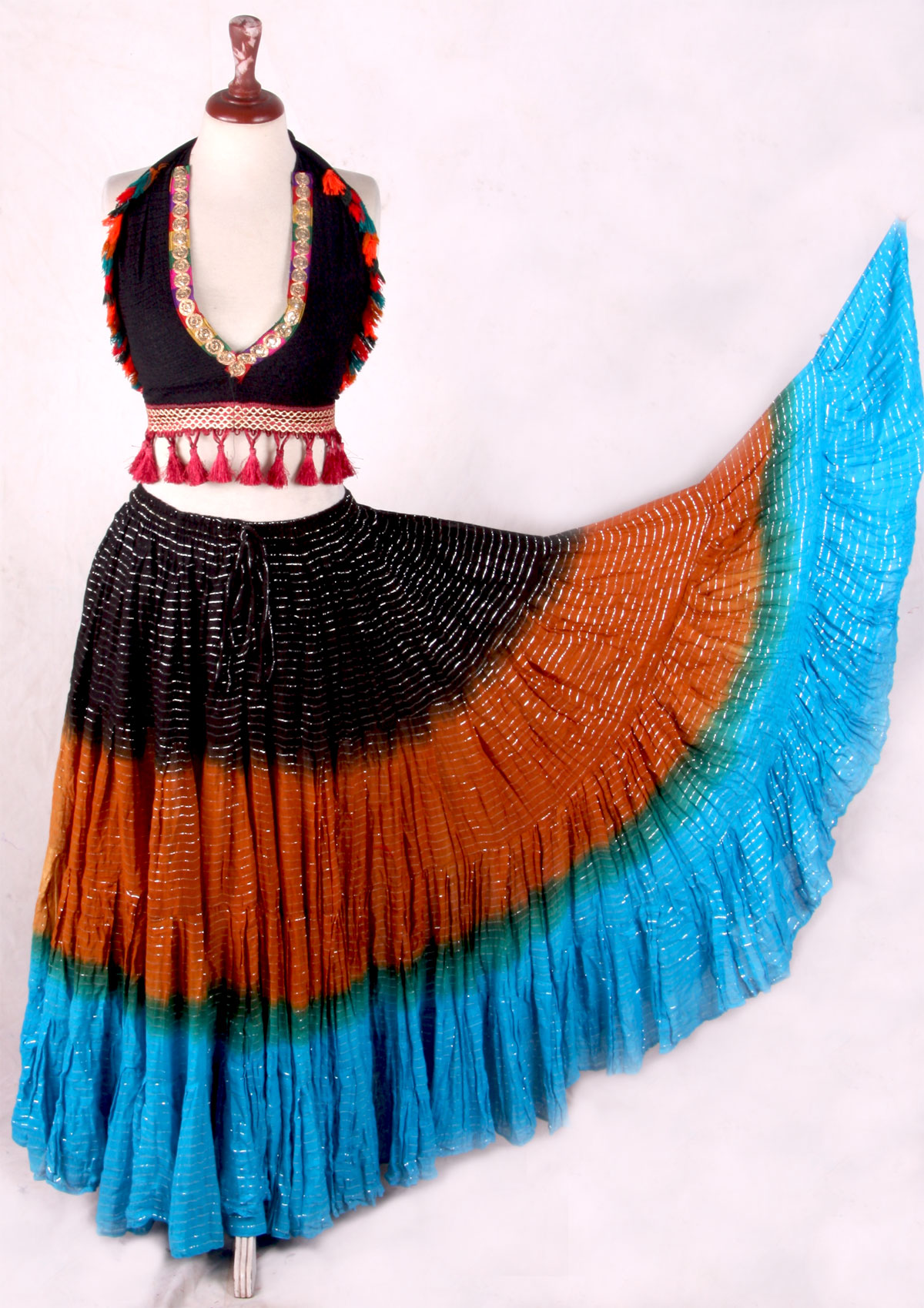 LUREX GYPSY SKIRT IN 3TONE (COTTON LUREX) 25YARDS Black/Gold/Turquoise