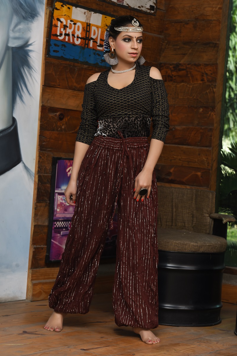 Lurex HAREM PANT IN BLOOMER STYLE DARK BURGUNDY
