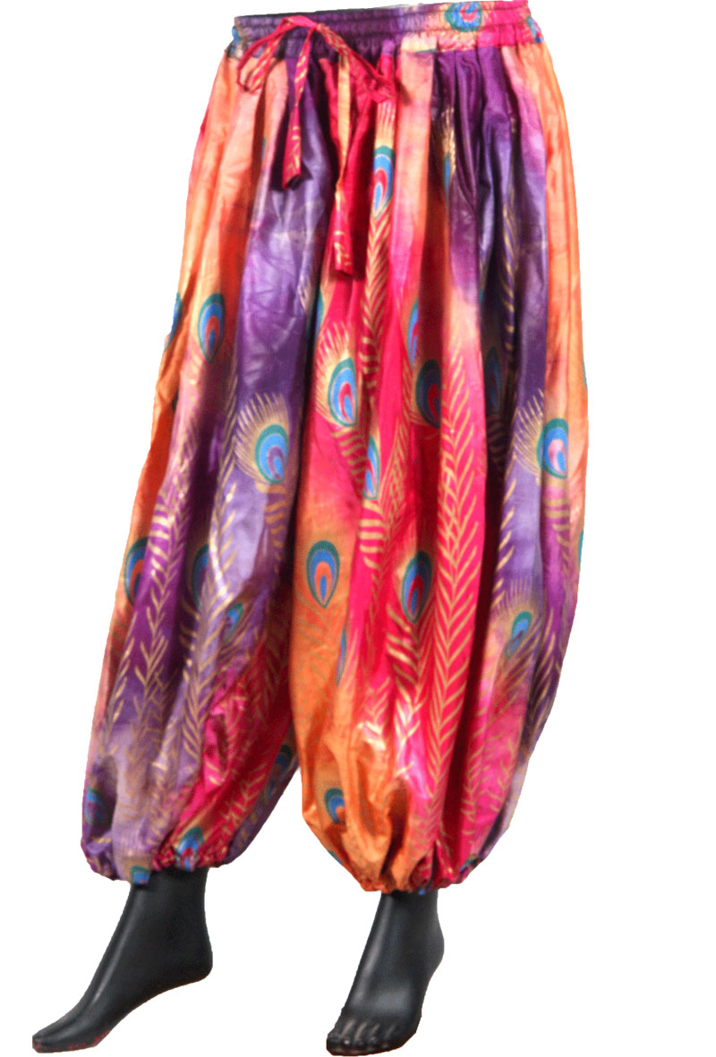 PEACOCK BLOCK PRINT HAREM PANT IN BLOOMER STYLE In TYE DYE FABRIC Orange/Pink/Purple