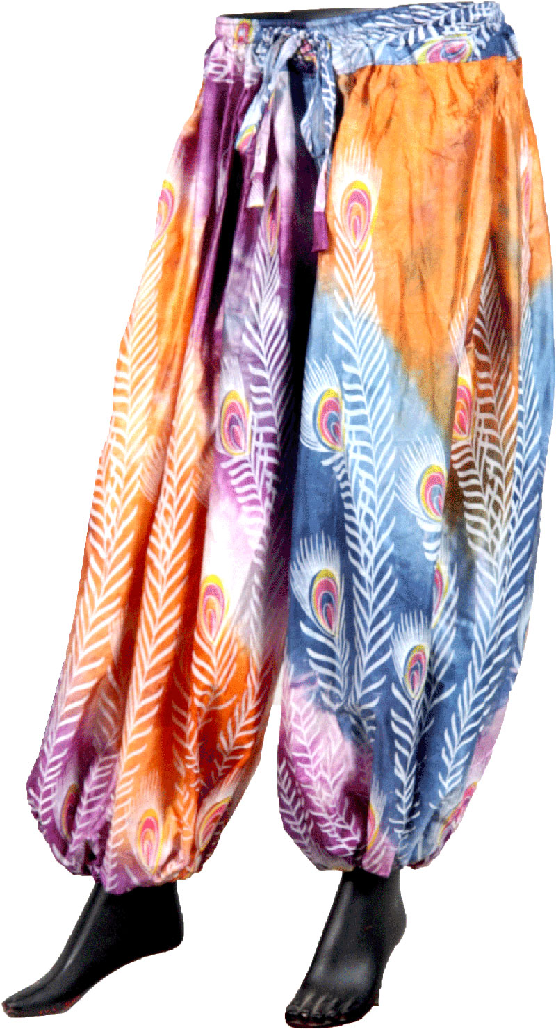 PEACOCK BLOCK PRINT HAREM PANT IN BLOOMER STYLE In TYE DYE FABRIC