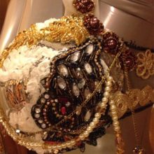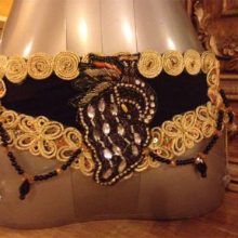 A VERY EYE CATCHER SET MADE FROM TRIMS,LACES ,BEADS,EMBROIDERED PEACOCK PATCH AND ETC,