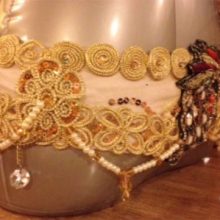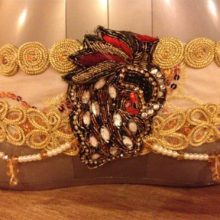 PEACOCK BRA & BELT SET (MADE FROM BEADED PEACOCK PATCHES ,TRIMS & ETC)