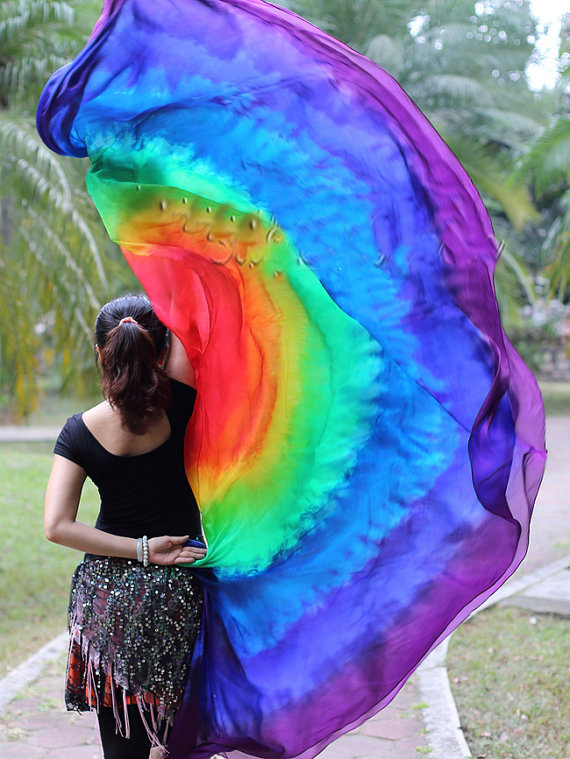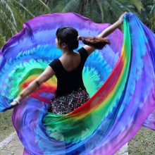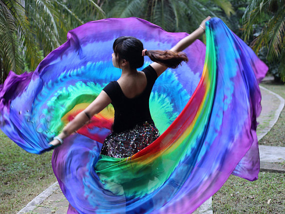 our new silk veils in circle design with colors of red/yellow/green/turquoise/blue/purple
