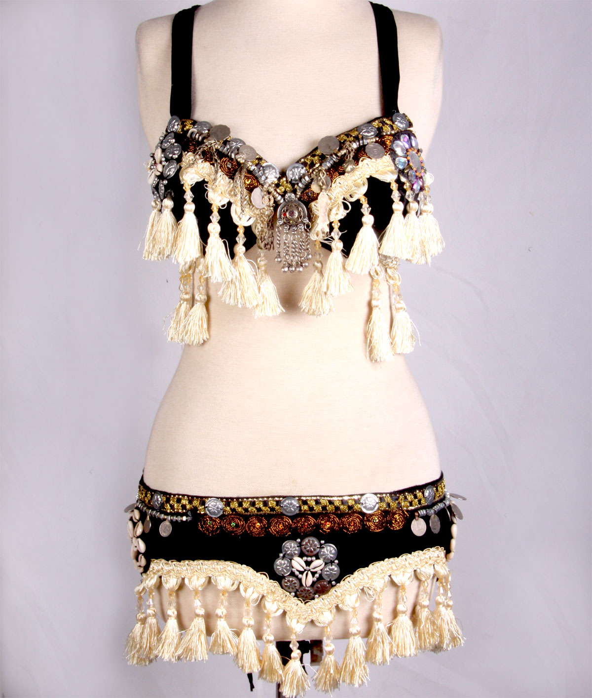 SILVEX SPECIAL KUCHI BRA AND BELT SET MADE FROM THICK BRAIDED TASSEL TRIM, KUCHI THINGS, MEDALLIONS AND ETC..