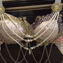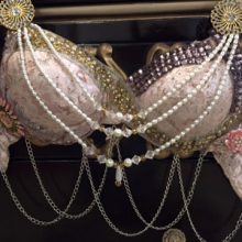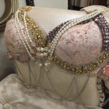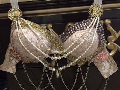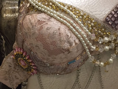 OUR STEAMPUNK COLLECTION BRA MADE FROM LACE METALLIC FABRIC, CHAINS,PEARL NECKLACE, BROOCHES AND ETC…