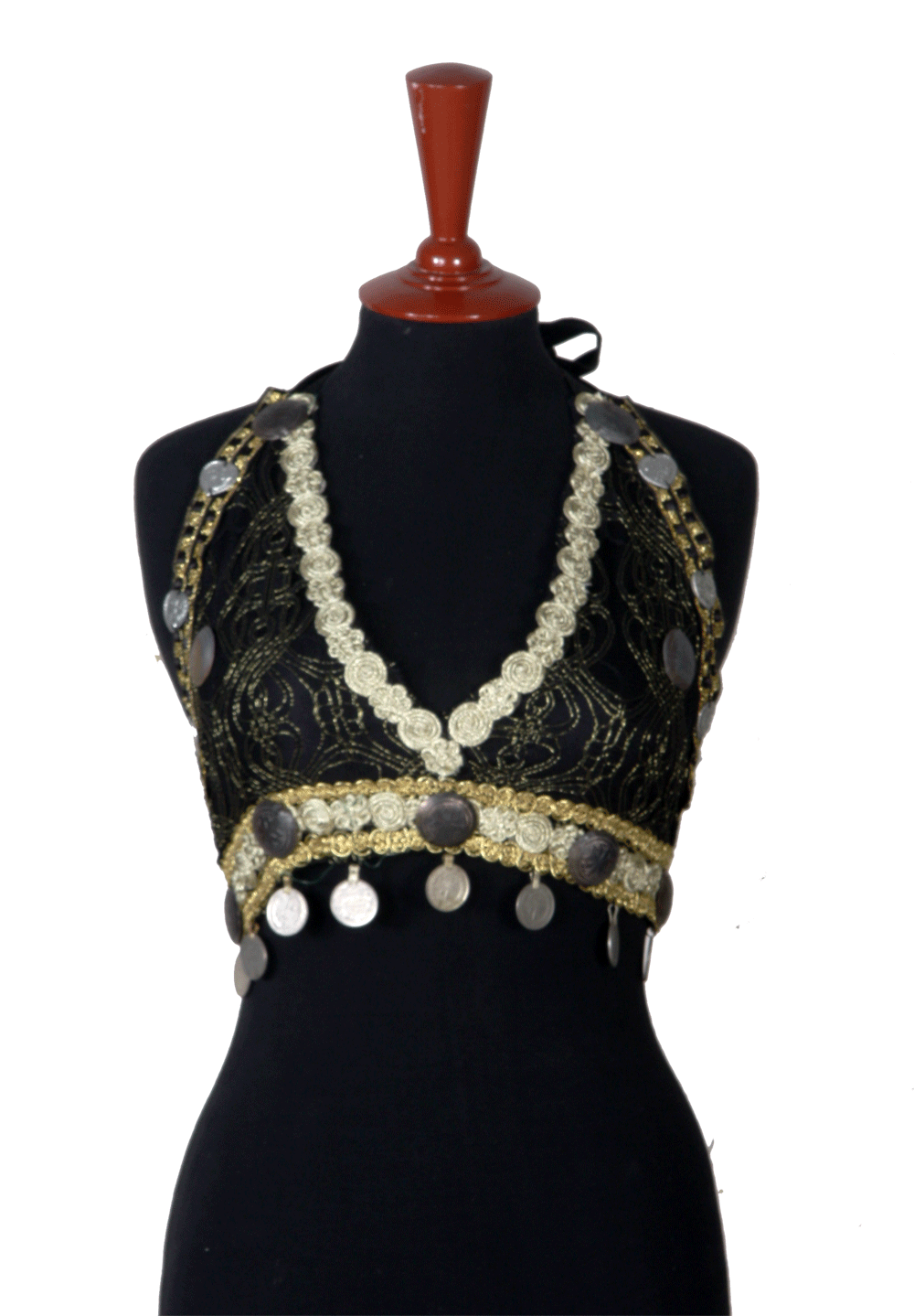 Steampunk Oriental Tribal Halter ,Buttons laces 2020 Collection Black Gold