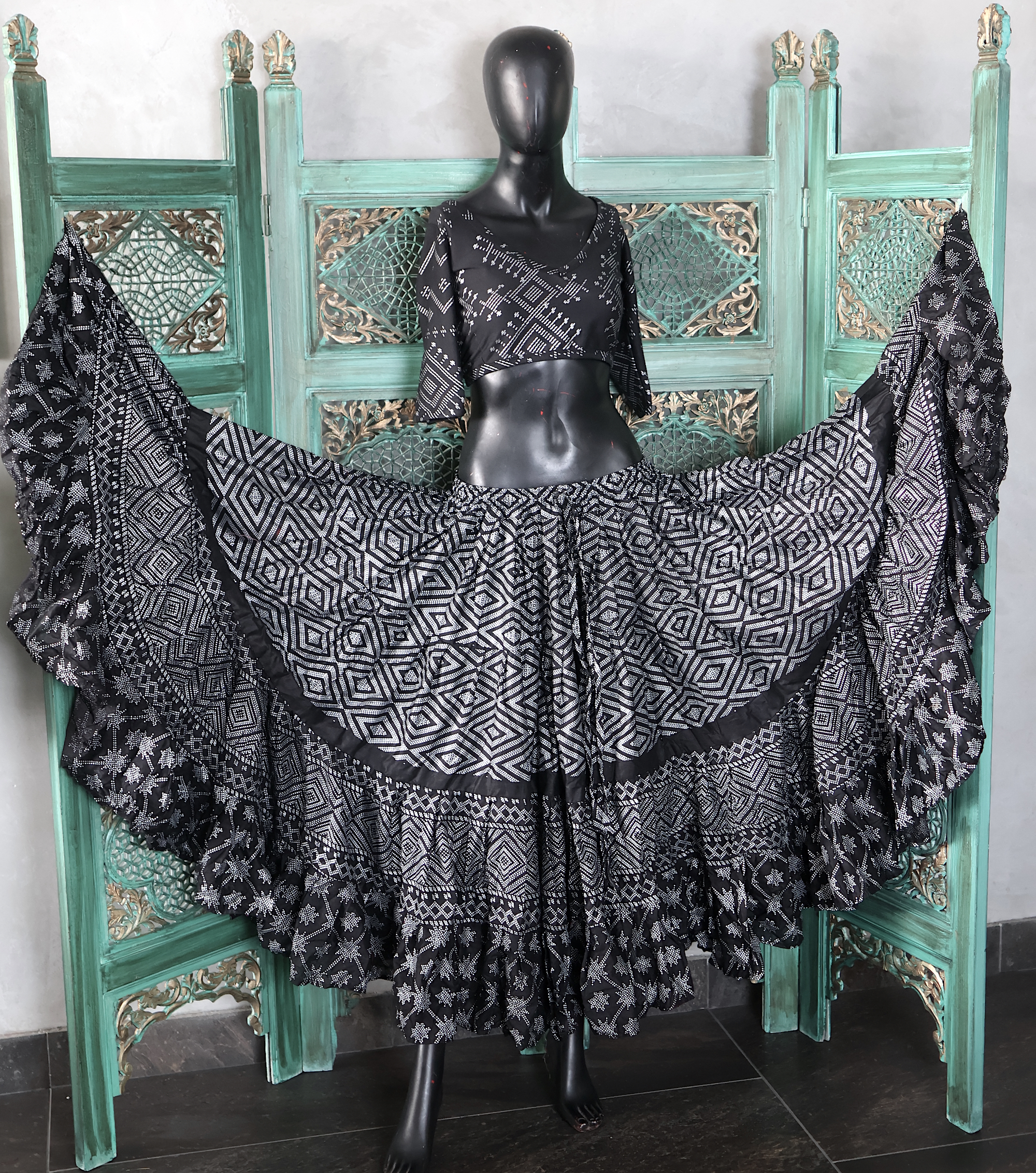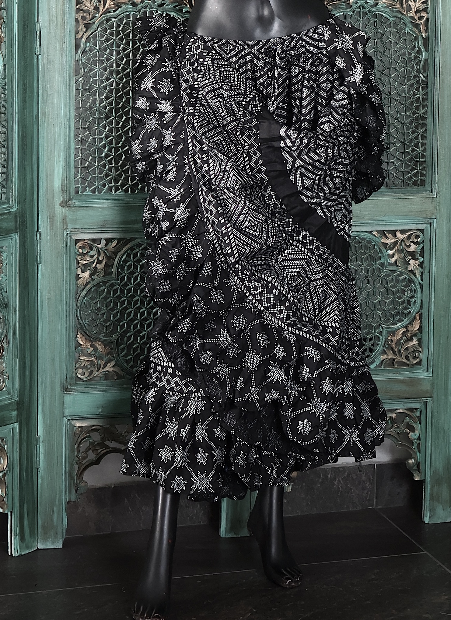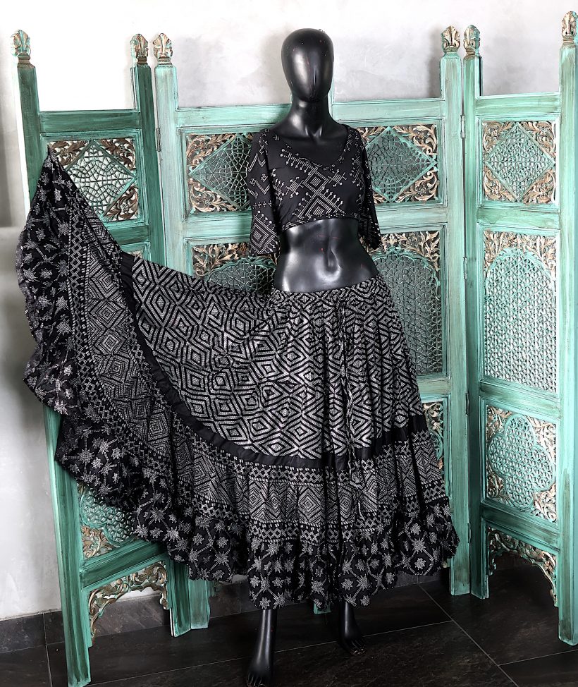 Tribal Belly dance 25 YARDS Printed 2024 Assuit Black Silver Design#4