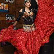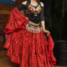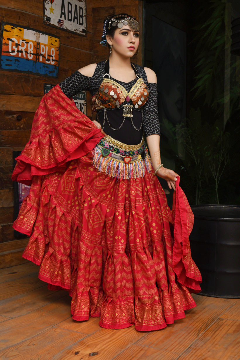 Tribal Belly dance 25YARDS ASSUIT BLOCK PRINTED Orange Gold 2019 Design#2 (100% Polyester)
