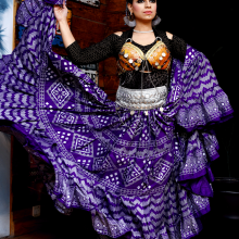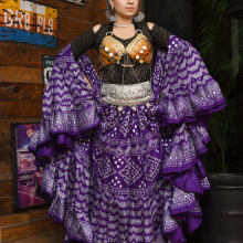 Tribal Belly dance 25YARDS ASSUIT BLOCK PRINTED Purple Silver 2019 Design#2 (100% Polyester)