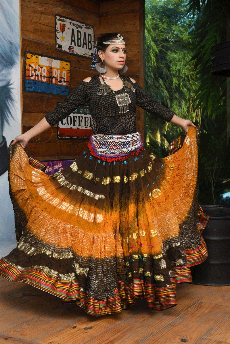 Tribal Belly dance 35YARDS Bollywood Padma Skirt (100% Cotton) Three Tone