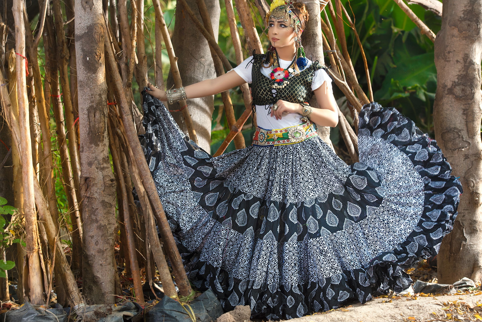 Tribal Belly dance Block Print COLLECTION 2018 25YARDS Black & White