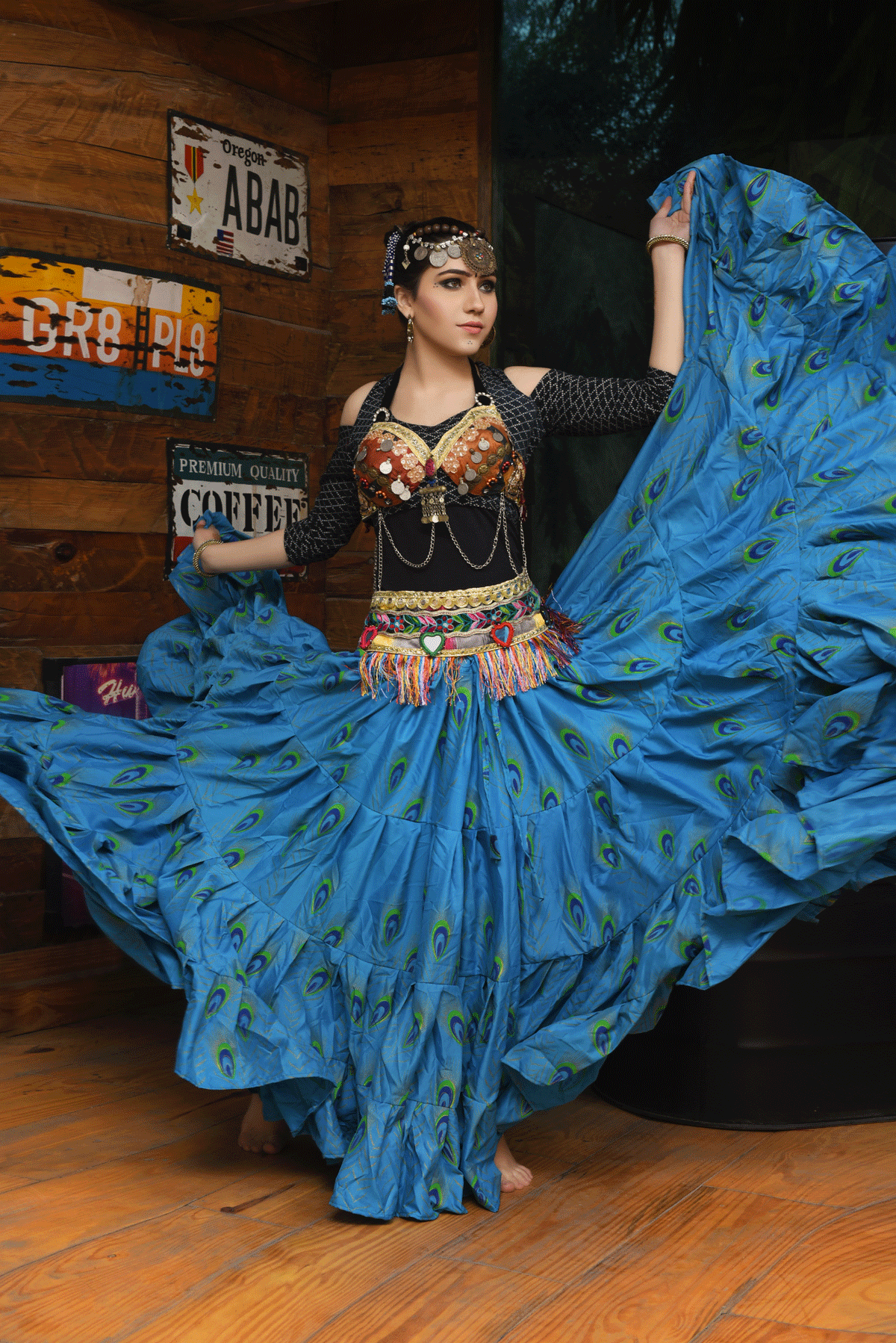 Tribal Belly dance Block Print COLLECTION 2018 25YARDS Peacock