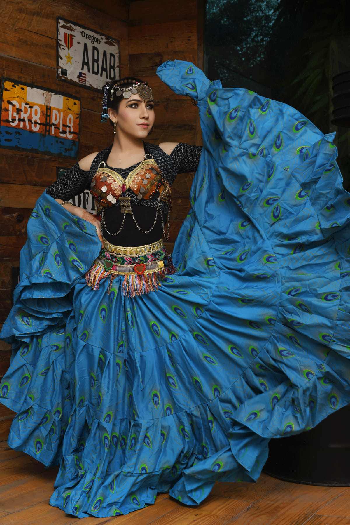 Tribal Belly dance Block Print COLLECTION 2018 25YARDS Peacock