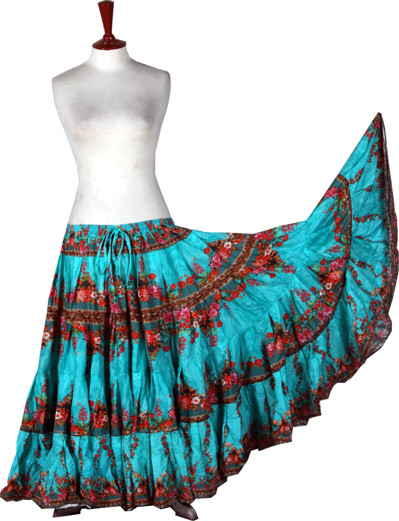 Tribal Belly dance Digital Block Print Spring COLLECTION 2019 Turquoise Flowers 25YARDS