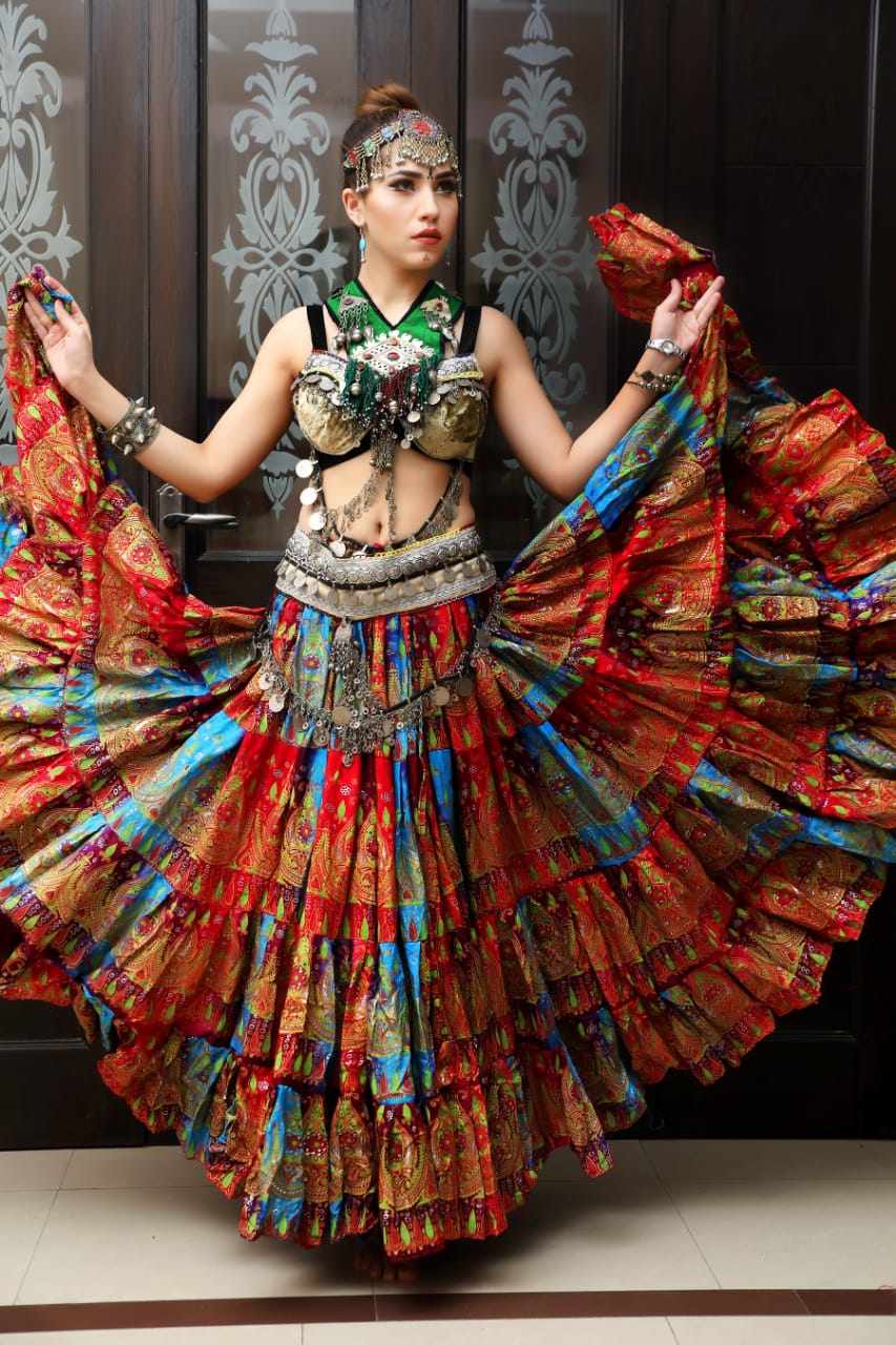 Tribal Bellydance Multi Beauty Tie Dye Skirt Four Border Turquoise Red Burgundy
