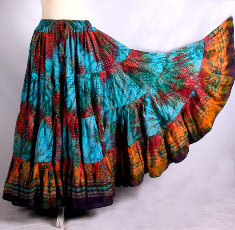 Tribal Bellydance Skirt in Multi Design Tye dye Block Printed 25 yards Tribal Skirts 2017 Collection 100% Cotton