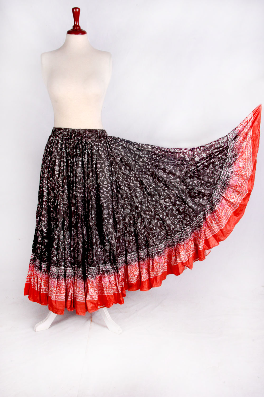 Tribal Bellydance Skirt in Oriental Digital Printed 25 yards Tribal Skirts 2017 Collection 100% Cotton Black/Red