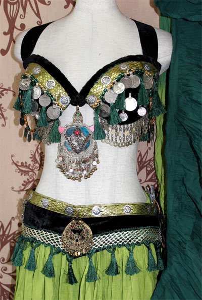 Tribal Bellydance Tribal Dance ASHWARYA TASSEL BRA WITH COINS,BANARSI LACE