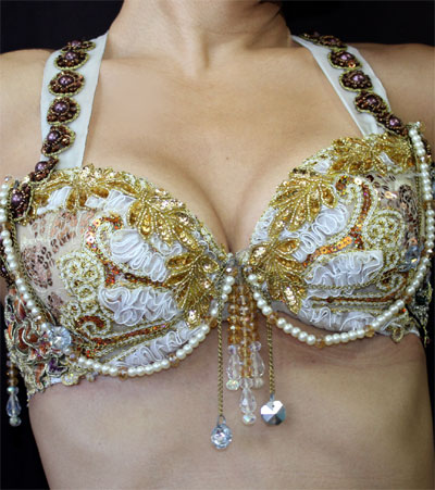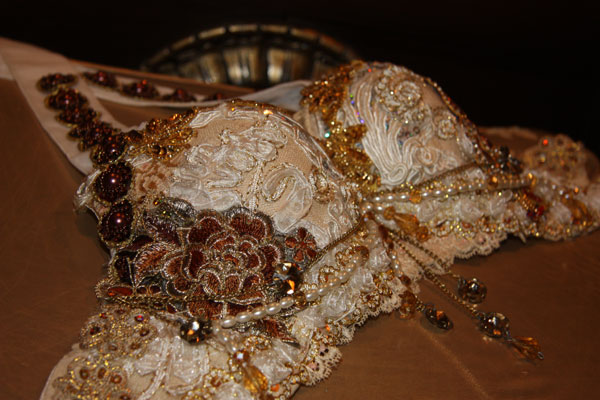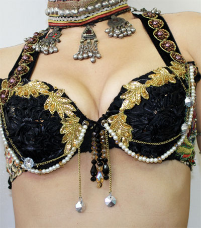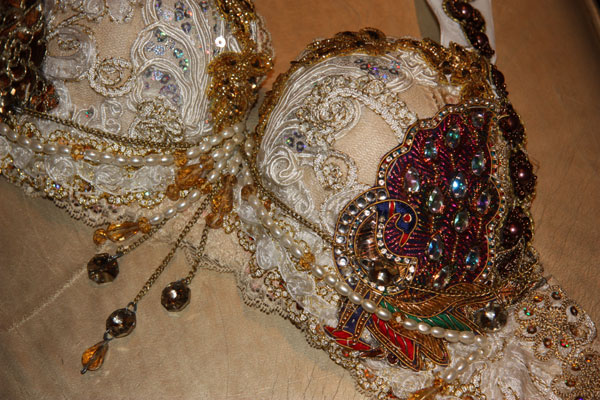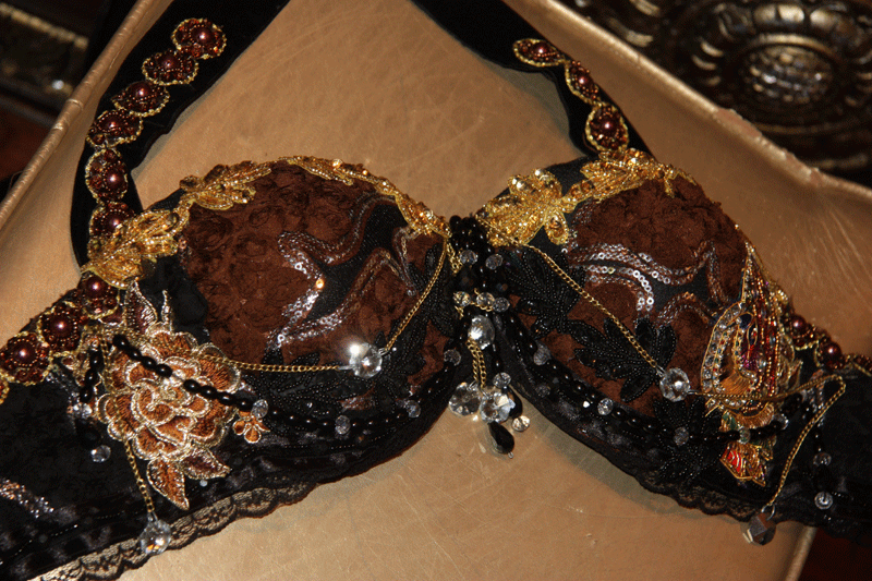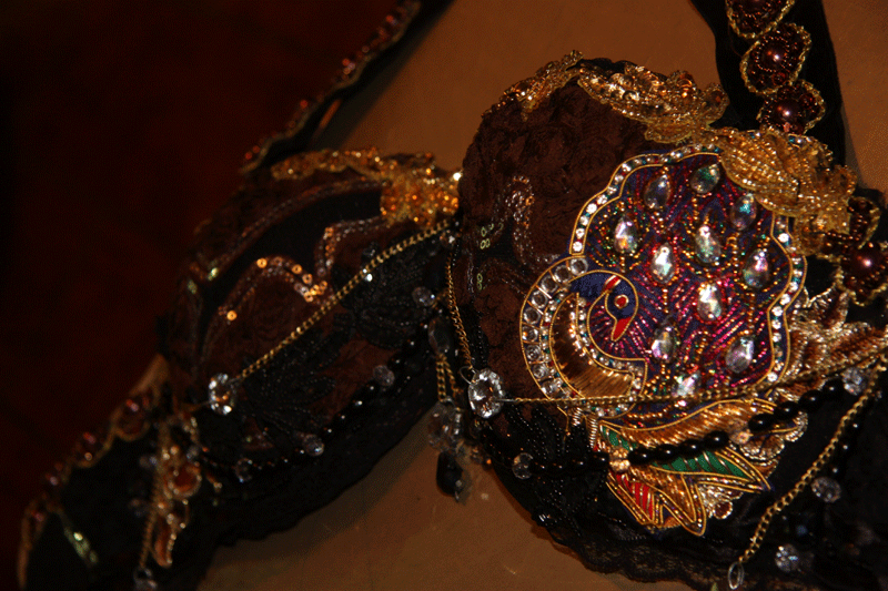 PEACOCK BRA WITH COINS, LACE