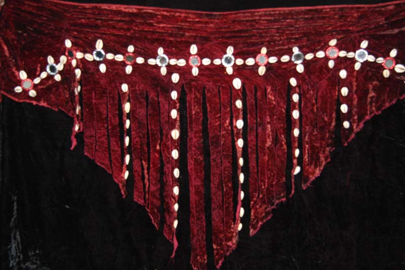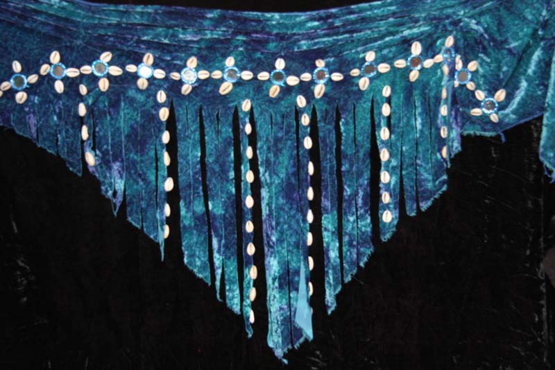 Its our new addition tye dye velvet scarf with shells and mirrors available in five color options.The velvet used iS our best quality silk velvet. It has 125 shells with 15 big mirrors on it.
